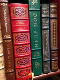 | With their fine, full leather bindings, gilt titles and raised spine bands, Franklin Library and Easton Press books are stunning to look at and bring classic elegance to any decor. Great reading too! We recommend these books as outstanding gifts for graduation, retirement, birthdays, and other special occasions. Some of our Easton Press books are available to order online here for worldwide delivery. You can also email your requests for unlisted books and we will search the shelves for you. |